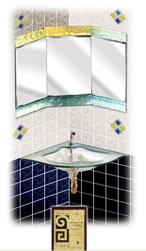 This is a modern yet elegant set of bath room set that consist of a corner glass basin with three (3) panel of matching decorative mirrors. It won an award for good design from local design council.