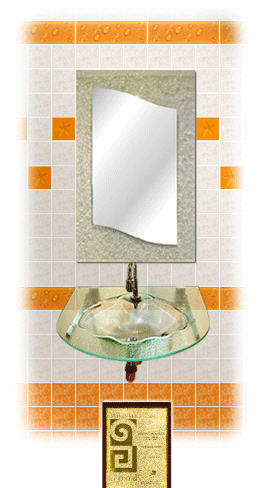 This is a modern yet simple set of bathroom set that consist of a glass basin with a large rectangular shaped mirror.