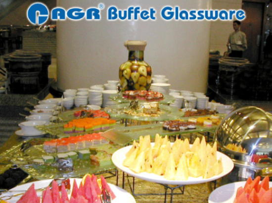 Buffet Glassware that includes plates, cups, pans, glass, pots and etc. Suitable for both commercial and household functions.