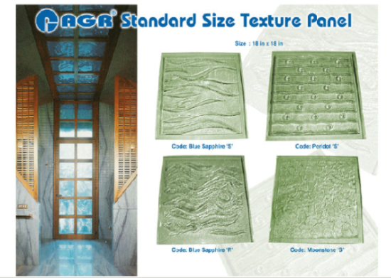 Textured glassware that are made to function as panels to illustrate bathrooms or saunas.