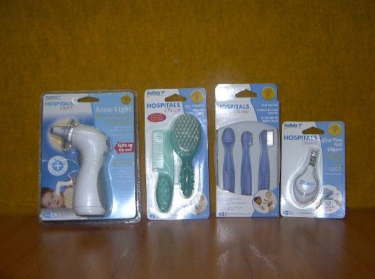 Safety 1st. Health Care Hospital Choice Products like Ear Thermometer, Brush & Comb Set, Toothbrush Set. A must for every new parent, this 6 piece nursery care kit is the perfect shower gift! This convenient set offers the care essentials you should have on hand in your nursery. Packed in a reusbale drawer organizer are a Digital Thermometer, Nasal Apirator, Medicine Spoon and Dropper, Baby Nail Clippers and Emery Boards.