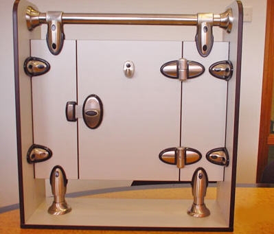 This High Pressure Laminate (HPL) compound is made of several layers of Kraft and decorative paper with melamine finish on both sides | Thickness | 10mm, 13mm and 18mm | | Locksets | Stainless steel latch with indicator disc in red/green | | Hinges | Stainless steel springloaded hinges for self-closing purpose | | Coat Hook | Stainless finish with cover | | Pilaster Footing | Optional for floor-anchored system |