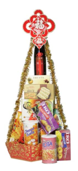 | 1 | Merlot Mayback France | 1.5ml | | 2 | Oriental Soto - Cuttlefish Flavoured snack | 80g | | 3 | Oriental Rota - Prawn Flavoured snack | 80g | | 4 | CNY Kuih Belanda | 120g | | 5 | Almond Pastries | 200g | | 6 | Beryl's Fruit Fiesta Chocolate | 50g | | 7 | Coconut Ring Cracker | 80g | | 8 | Preserved Mandarin Peel | 80g | | 9 | IKO Butter Cookies | 108g | | 10 | IKO Blackcurrent Butter Cookies | 108g | | 11 | Joy n Jolly Prawn Cracker | 60g | | 12 | Tapioca chips | 48g | | 13 | Decorative Basket | | | 14 | CNY Greeting Card | | | 15 | Prompt Delivery | |