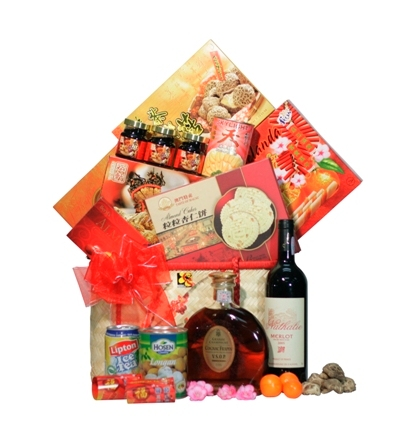 | 1 | Grande Champagne VSOP | 70cl | | 2 | Merlot Joanna Park red Wine - 2005 | 750ml | | 3 | Grain Almond Kemel Cake | 300g | | 4 | Hand Selected Dried Mushroom | 100g | | 5 | Skylight Pacific Clams | 425g | | 6 | Hosen Longan Syrup | 565gm | | 7 | Lipton Peach/Lemon Tea | 300ml | | 8 | CNY Kuih Belanda | 120g | | 9 | De old Memory Sesame Twin Roll | 100g | | 10 | Beryl's Almond Chocolate | 80g | | 11 | Essence of Chicken with Ginseng & Condycelps | 70g X 3 | | 12 | Decorative Basket | 1 pc | | 13 | CNY Greeting Card | 1 pc | | 14 | Prompt Delivery | |