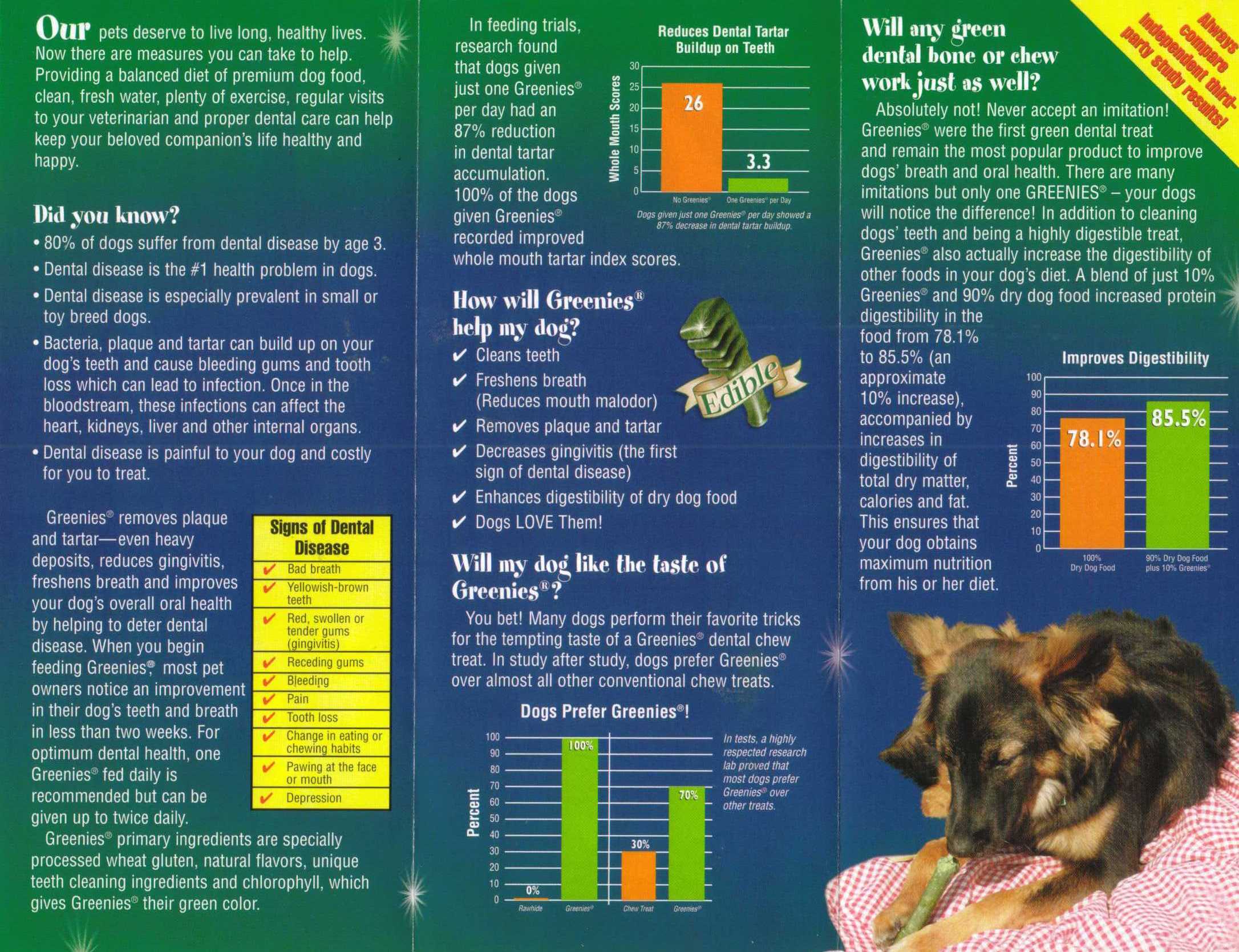 Will my dog like the taste of Greenies? You bet! Many dogs perform their favourite tricks for the tempting taste of a Greenies dental chew treat. In study after study, dogs prefer Greenies over almost all other conventional chew treats. Choose the correct size Greenies for your dog: - Jumbo for dogs over 100 pounds